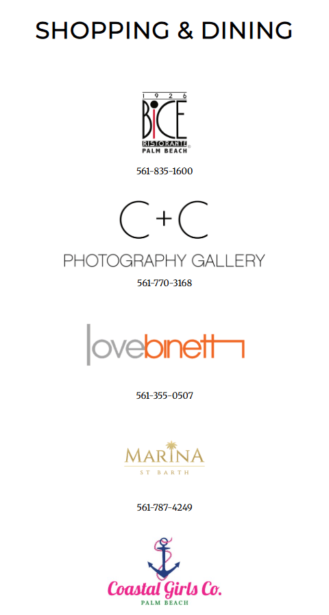 Las opciones de compras y restaurantes se presentan con una mezcla de estilo de vida e información práctica: imágenes + nombres + teléfono / contacto. Cada boutique o restaurante obtiene una representación visual, al tiempo que mantiene el directorio fácil de escanear y explorar.