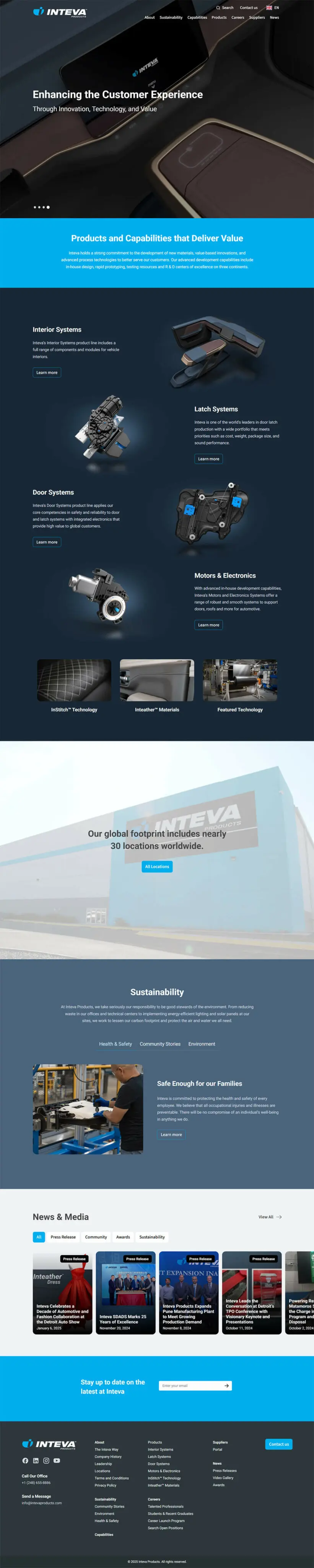 Inteva Products is een wereldwijde toeleverancier voor de automobielindustrie, bekend om zijn uitmuntende technische expertise op het gebied van interieursystemen, sluitmechanismen, elektronica en motoren. Met diepe wortels in de industrie en een cultuur die gericht is op innovatie en duurzaamheid, had het bedrijf behoefte aan een modern digitaal platform dat zijn veranderende prioriteiten en wereldwijde impact weerspiegelde.